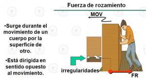 rozamiento o de fricción (FR) es una fuerza que surge por el